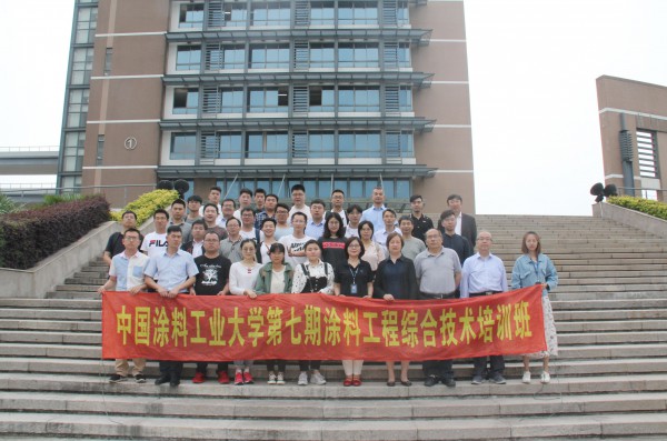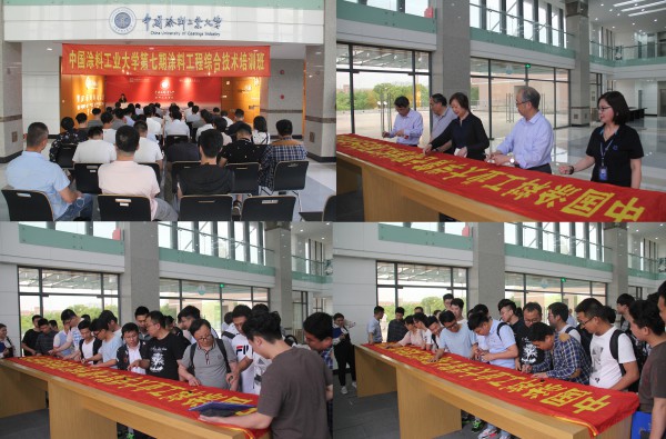 中国涂料工业大学第七期涂料工程综合技术培训班圆满落幕。结业典礼仪式结束后,全体师生在横幅上签名并合影留念。