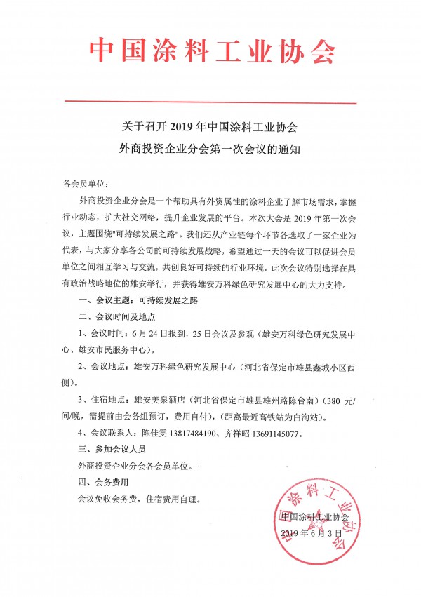 外商投资企业分会是一个帮助具有外资属性的涂料企业了解市场需求,掌握行业动态,扩大社交网络,提升企业发展的平台。本次大会是2019年第一次会议,主题围绕"可持续发展之路"。我们还从产业链每个环节各选取了一家企业为代表,与大家分享各公司的可持续发展战略,希望通过一天的会议可以促进会员单位之间相互学习与交流,共创良好可持续的行业环境。此次会议特别选择在具有政治战略地位的雄安举行,并获得雄安万科绿色研究发展中心的大力支持。