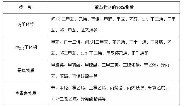 (四)深入实施精细化管控。各地应围绕当地环境空气质量改善需求,根据O3、PM2.5来源解析,结合行业污染排放特征和VOCs物质光化学反应活性等,确定本地区VOCs控制的重点行业和重点污染物,兼顾恶臭污染物和有毒有害物质控制等,提出有效管控方案,提高VOCs治理的精准性、针对性和有效性。全国重点控制的VOCs物质见附件2。