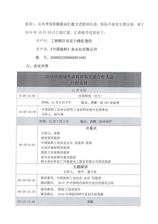*11月8日8:30-12:00 2019中国绿色涂料涂装交流合作大会绿色涂装论坛