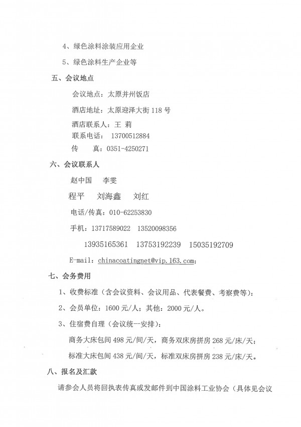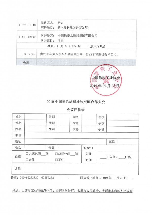 2019中国绿色涂料涂装交流合作大会会议回执表