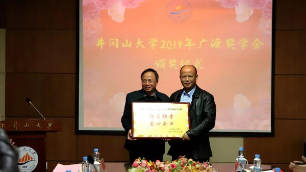 李海滨董事长自身是化工专业正教授高工,创办非金属无机粉体化工企业,又是井冈山大学客座教授,他对家乡这所综合性大学寄予厚望,对化学化工学院情有独钟。颁奖仪式上,李海滨董事长发表热情洋溢的致辞,他指出:“企业的发展离不开人才,人才的培养离不开教育。长期以来,广源集团在做大做强自身企业的同时,不忘致富思源,践行乐善好施,坚持做一家政府认可,人民满意,社会称赞的爱心企业。公司坚持“以人为本”的管理理念,树立“崇尚知识、尊重人才”的价值观,把人才培养放在企业战略的重要地位。在永丰几十所中小学设立了“广源奖学金”,积极参与“金秋助学行动”,捐资边远山区新建校舍,大力支持家乡的教育事业发展。与十多家高等院校开展校企合作,建立江西省工程技术中心和博士后工作站,促进企业人才引进和科研成果转化”。