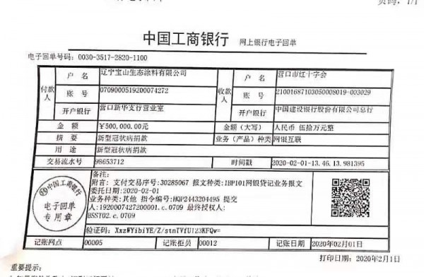 在此严峻时刻,辽宁宝山集团作为一家具有高度社会责任感的本土民营企业,秉承一如既往的向上向善的企业文化,迅速做出反应,于2月1日公司携全体员工向营口市红十字会捐款50万元,用于支援疫情防控工作。公司1月30日向全体员工发出捐款倡议,号召大家积极行动起来齐心合力、伸出援手、慷慨解囊,携手全国人民共度时艰。仅仅3天时间,截止2月1日下午,集团员工已累计捐款近9万元。值得一提的是,在此次捐款中,集团党总支和全体管理干部充分发挥基层党组织的战斗堡垒作用,全体党员、入党积极分子和所有管理干部,在集团统一指挥下,在党总支的号召下充分发挥党员先锋模范带头作用、勇于担当,积极踊跃地参与到捐款活动中来。目前集团全员范围内的捐款仍在持续进行中。
