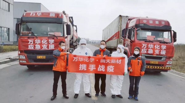 万华化学与回天新材共同捐赠用于武汉火神山、雷神山医院项目建设的胶粘剂产品及其原料。