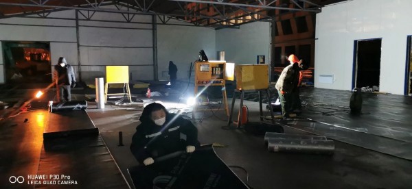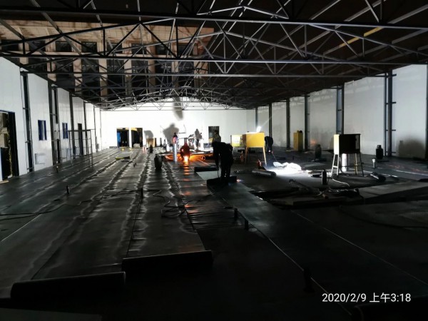 2月8日晚8点,由张富广带队的人力与物料全部进场。经过10个小时的连续奋战,于2月9日早上6点完成地面防水施工工程,总施工面积超过1000平方米。该任务的提前交付,也为项目施工建设抢出一天宝贵工期。