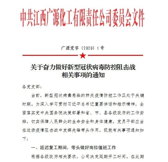 疫情爆发超乎了我们的想象,疫情就是命令,防控就是责任。面对全国各地陆续封城和周边地区疫情扩散的严重形势,广源集团迅速行动起来,把疫情防控摆在重中之重的位置来抓。在广源集团党委书记、副董事长邹检生的带领下,全体党员干部在这场疫情阻击战中发挥先锋带头作用,积极投入到严防死守的疫情防控工作之中。