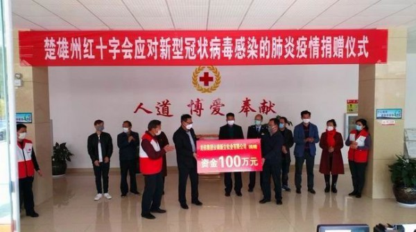 2月12日,新立钛业公司向楚雄州红十字会捐赠人民币100万元,楚雄州副州长王建雄、新立公司常务副总经理李建军出席仪式。病毒无情人有情,爱心捐赠暖人心。坚信在党中央、国务院及各级政府坚强领导下,在全社会通力协助下,定能汇聚起众志成城、同心战“疫”的磅礴力量,最终取得防疫阻击战的胜利!