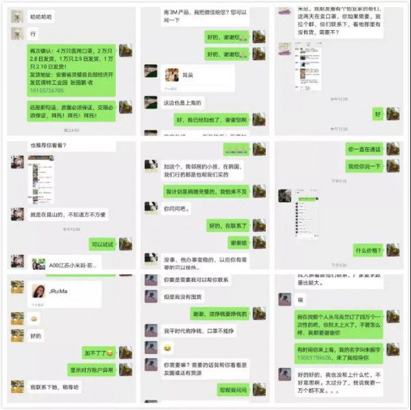 (朱总寻找过程中的部分聊天记录,有的朋友在一番努力后为没有结果而自责,而有资源的朋友表示要原价出售,在特殊时期说什么也不能赚口罩的钱。不管有没有帮上忙,儒特都会将这份情谊铭记在心!也坚信,只要全国上下团结一心,就一定能打赢这场没有硝烟的战争!)