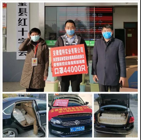 终于,经过几天不懈努力,找到了口罩供应渠道!但在运输过程中,经过过各省市时,大部分口罩物资被当地政府征用了。经过几番周折,仅有4万4千口罩于今天上午运达安徽工厂。经集团决定,由安徽工厂(安徽儒特实业有限公司)代表儒特集团向灵璧县疫情防控应急指挥部捐赠4万4千只口罩,用于援助灵璧县的疫情防控工作。