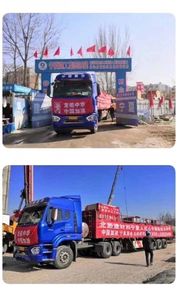 2月11日,北新建材富平基地和涿州基地紧急发货,各区分别联系各地交管部门、村委会等,快速办理好运输通行证件。与此同时,工厂的北新建材员工们在得知要紧急援建“宁夏小汤山医院”建设后,纷纷主动要求上一线支援项目建设。20多个小时后,所有货物装车完毕,一车车满载着北新人爱心的物资奔赴宁夏,它们将穿越1000多公里的遥远路途,为“宁夏小汤山”战疫医院送去最有力的建设支援。