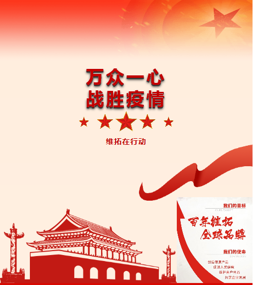 2020年2月12日,10:30,维拓水漆董事长谭毅先生带领部分复工的员工,为前线医护人员打气、加油:“万众一心,战胜疫情,武汉加油,中国加油,加油、加油、加油!”
