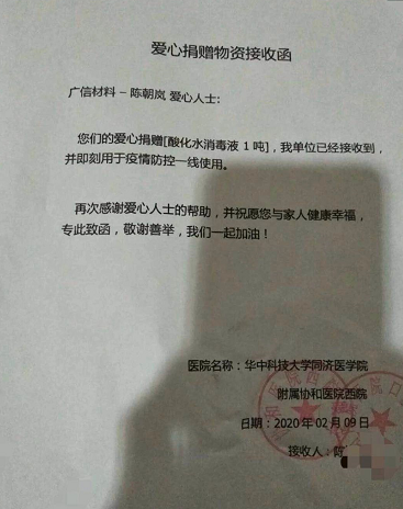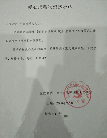 部分董事、高管捐赠物资接收函,篇幅所限,不一一列举