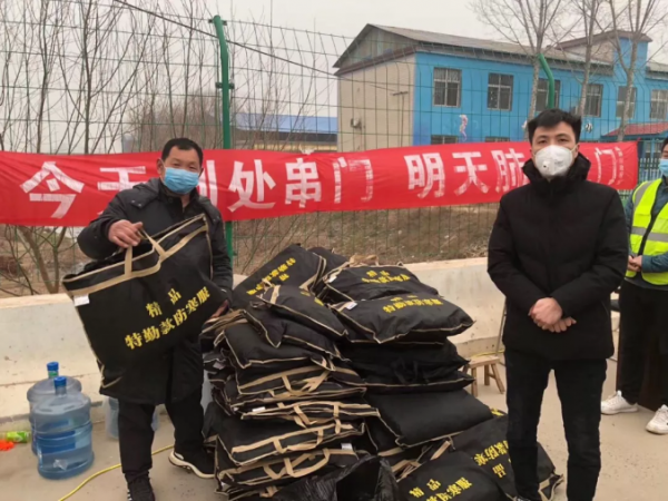 河南永华涂料科技为驻地卡点捐赠棉衣60件,为政府捐款2.58万元