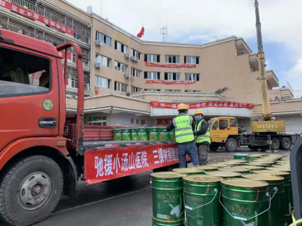 三棵树北京大客户团队及天津工厂组成抗疫驰援先锋队,主动与小汤山医院总指挥部取得联系,一批健康内墙涂料驰援物资运达小汤山医院。在施工期间,三棵树应急小组还全天候现场查勘、给出书面施工指导。