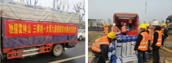 在医院筹建之初,三棵树旗下的大禹九鼎专业防水公司的员工就组建了先锋队,在了解到物资需求信息后,4小时内完成物资和车辆的紧急调配,争分夺秒连夜将物资装车、交付、卸货、铺设。不到一天时间就铺设成功,助力于医院建设快速投入使用。