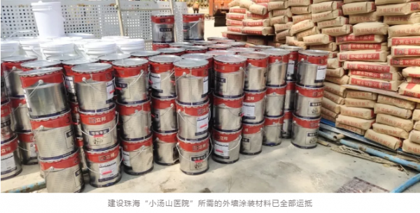 刷新供应加速度,就是为后续建设抢时间。截至发稿前,珠海“小汤山”医院建设所需的腻子及外墙涂料产品已全部送达项目建设现场。