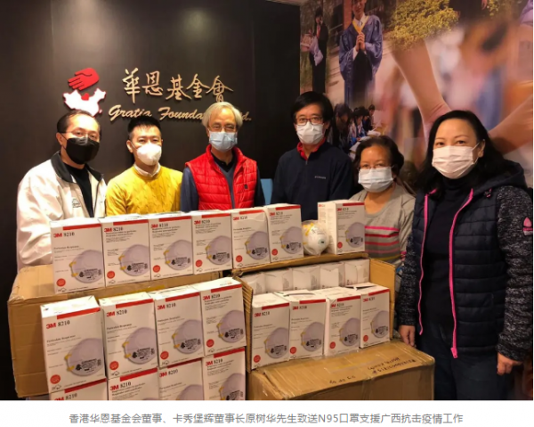 自新型冠状病毒肺炎疫情发生以来,疫情的发展动态时刻牵动着我们的心。华恩基金会创始人、卡秀堡辉集团董事长、万辉集团董事长原树华先生关注着广西儿童村所在地都安的疫情态势,关注着在广西、福建、四川等地捐建运行的“儿童之家”孩子们的健康情况。之前原先生本想安排个人捐款20万元人民币,经由广西儿童村捐赠。后来又得到了更多爱心人士和集团公司员工的支持,捐赠总额累计88万元港币。当得知目前最急缺医疗物资时,华恩基金会利用捐款克服重重困难通过各种渠道采购医疗物资送至一线医院……