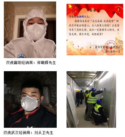 “双虎人”是好样的,是值得敬佩的,除了他们二位,还有许多经销商和双虎员工也坚持在抗疫一线,正是有千千万万“双虎人”这样平凡而无私奉献的人,我们才有了必胜的决心和基础!疫情防控是当前最重要的工作,也到了最为关键的时刻,严格遵守国家规定,坚决打赢这场疫情防控阻击战,为后续的美好生活和工作打下坚实的基础。双虎加油!武汉加油!湖北加油!
