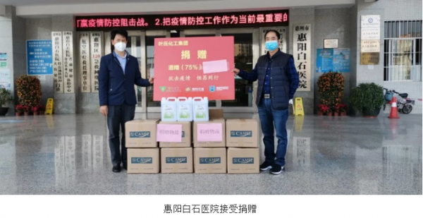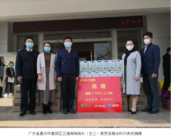 近日,紫荆花涂料集团旗下子公司恒昌涂料(惠阳)有限公司向广东省惠州市惠阳区应急管理局、卫健局、新圩镇政府、新联村委会及惠阳白石医院捐赠了2.5吨75%酒精,以助力疫情防护工作。