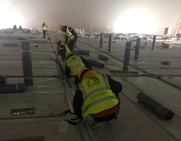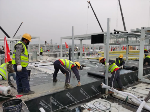 2月4日,根据该项目工程进度安排,东方雨虹的物资车辆与施工队伍相继抵达北京小汤山康复医院项目施工现场后,立刻进行防水施工安排。东方雨虹主要负责屋面及屋面拼接缝的防水任务。