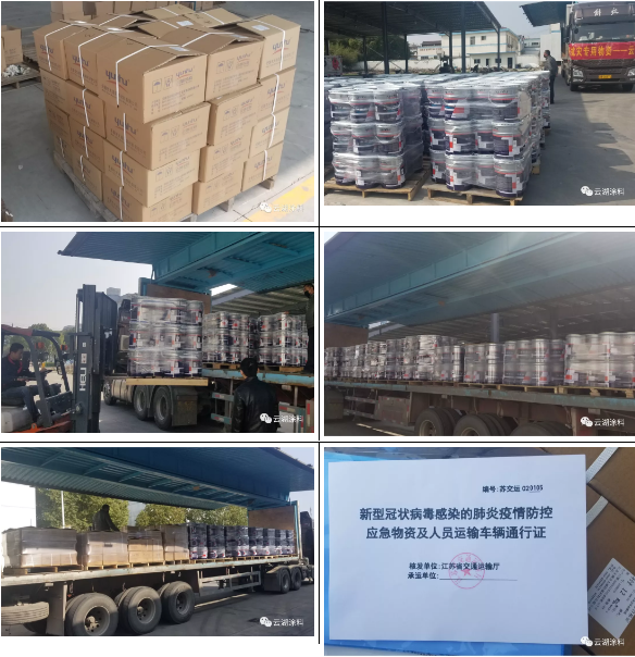 在接到中建科工的通知后,云湖涂料第一时间安排调配运输车辆、仓库装车发货、资料申报等工作,火速奔赴前线!