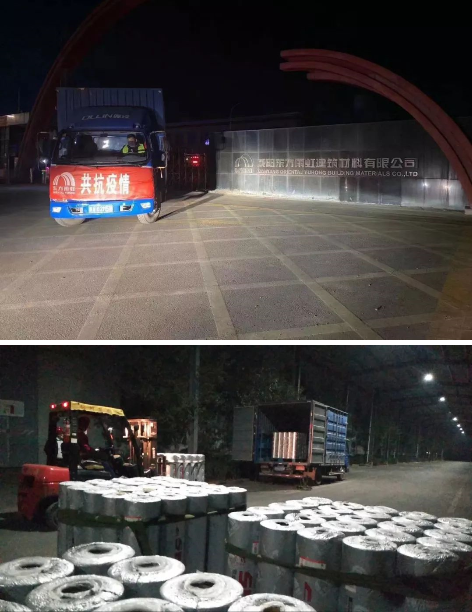 2月19日,芜湖生产基地又紧急将丰城市“方舱医院”调配项目建设所需物资:东方雨虹SAM-921高强型自粘沥青防水卷材,连夜送往施工现场。