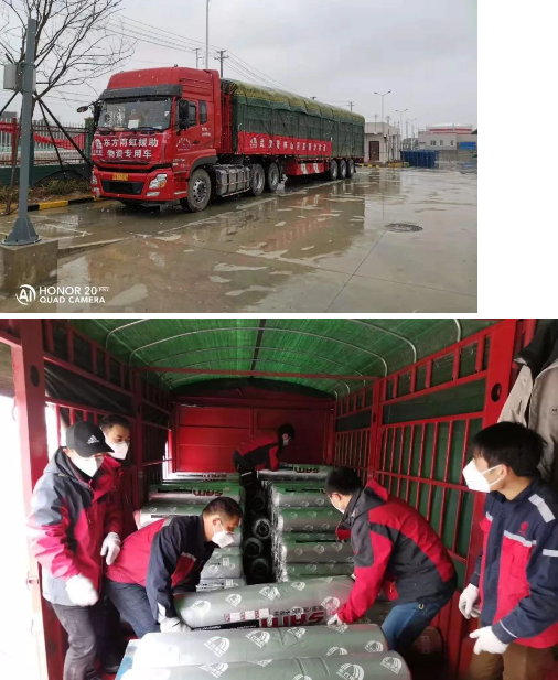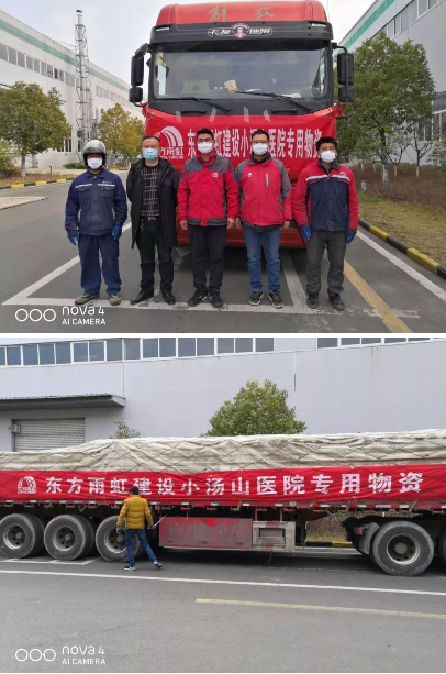 2月2日,荆门东方雨虹向武汉火神山医院建设项目发货,在掇刀区新型冠状病毒感染的肺炎疫情防控指挥部协调与支持下,火速驰援。