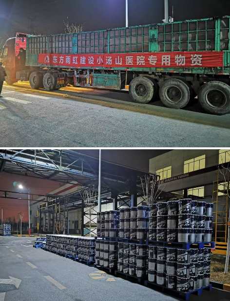 2月3日,在北京小汤山康复医院发出修缮改造工程开工之后,东方雨虹唐山生产基地为其输送防水涂料。