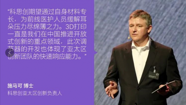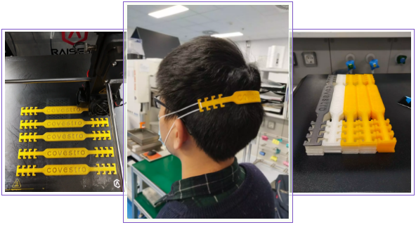 首批3D打印出来的50个口罩调节器,已捐赠给湖北孝感防疫指挥部;本周,科思创已通过上海金桥碧云公益基金会,向上海市第六人民医院捐赠500个口罩调节器;此外,科思创已联系合作伙伴Raise3D和Polymaker扩大产能,并与公益组织合作,为更多医护人员缓解耳朵的压力……