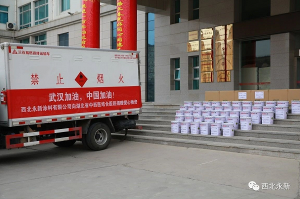 西北永新涂料向湖北省中西医结合医院、武汉市第一人民医院捐赠光沐原抗菌除醛产品,用于支持开展新型冠状病毒感染肺炎疫情工作。