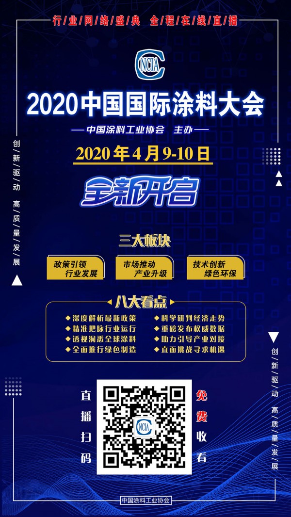 目前,疫情防控依然严峻,同时,行业发展时不我待!为着力统筹推进疫情防控和行业运行发展,best365中国官方网站决定将今年召开的“2020中国国际涂料大会”由线下移至线上,以网络在线直播方式全新推出,并于2020年4月9-10日精彩亮相!届时,一场涂料行业“网络直播盛典”将完美呈现!