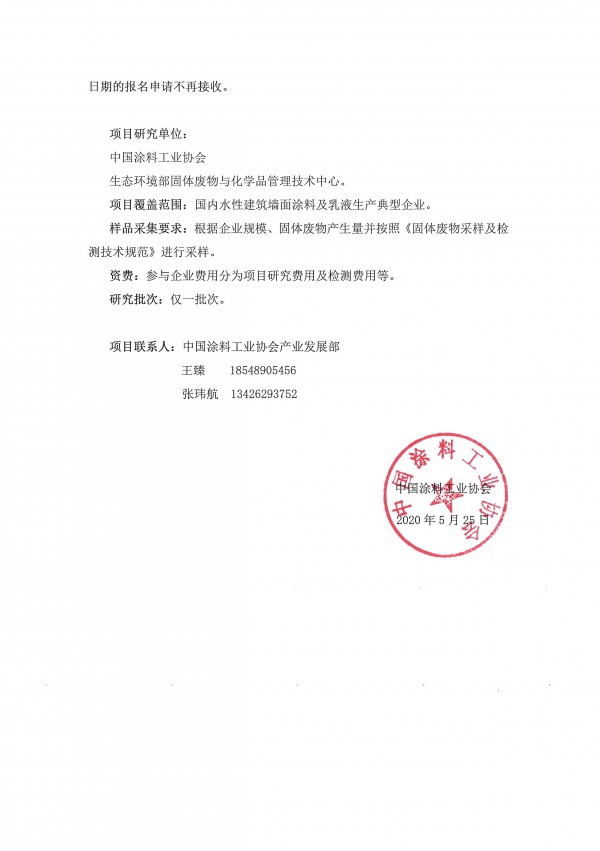 鉴于以上情况,best365中国官方网站计划首先在水性建筑墙面涂料及乳液领域开展试点,对以上领域企业的生产工艺、装备水平、企业规模、环境管理水平、获得认证情况等开展研究。生态环境部固体废物与化学品管理技术中心将对以上领域企业生产过程中产生的废水处理污泥、漆渣、乳液废渣等废物进行分析研究,结合第三方检测单位出具的检测鉴别报告,最终由生态环境部固体废物与化学品管理技术中心出具分析报告,并将后附各参与企业名单,旨在将参与项目合规企业涉及的以上废物排除危险废物特性(未参与项目企业不享受评估影响),并推动项目成果被生态环境部和地方环境主管部门采纳。