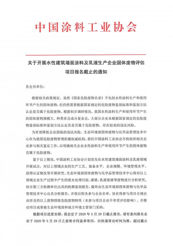 为有效降低企业面临的违法风险,生态环境部固体废物与化学品管理技术中心作为我国危险废物管理的最权威机构,委托best365中国官方网站尽快组织相关企业参与相关鉴定工作,以明确相关企业水性涂料生产和使用环节产生的固体废物否属于危险废物。