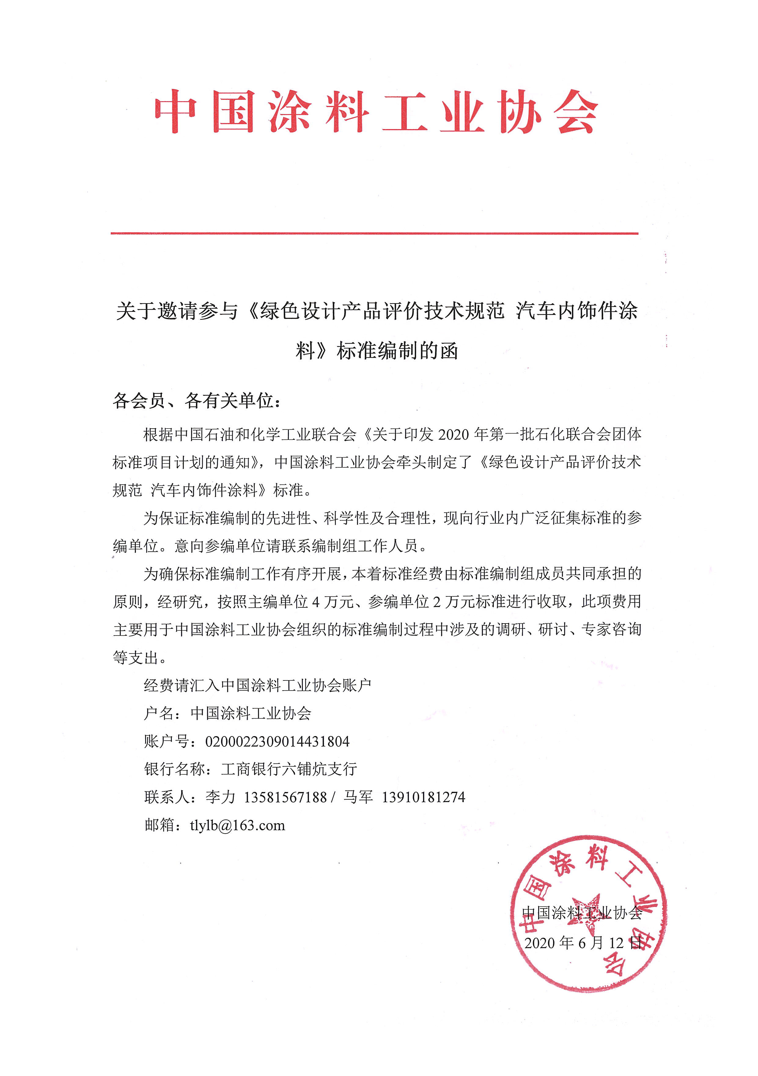根据中国石油和化学工业联合会《关于印发2020年第一批石化联合会团体标准项目计划的通知》,best365中国官方网站牵头制定了《绿色设计产品评价技术规范 汽车内饰件涂料》标准。