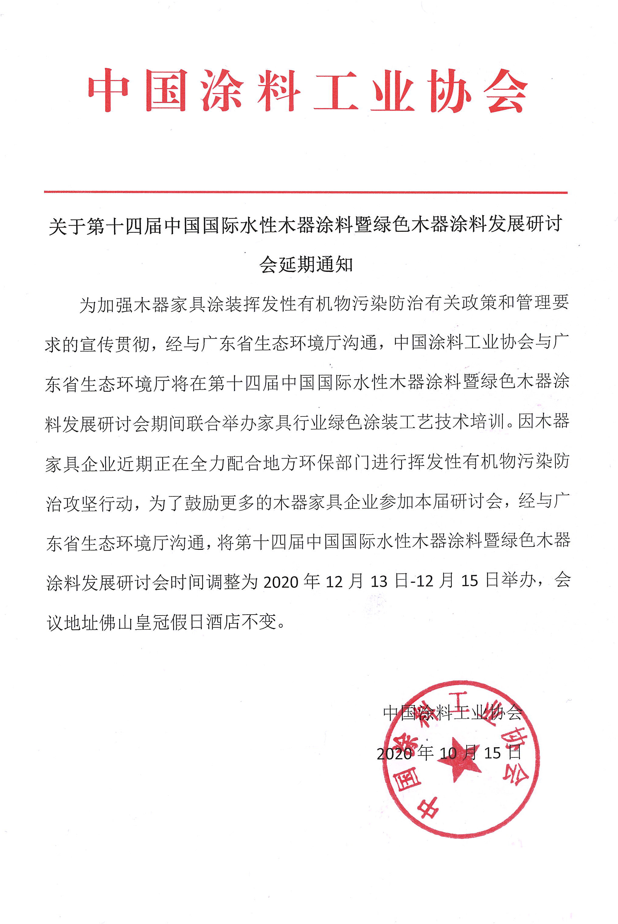 为加强木器家具涂装挥发性有机物污染防治有关政策和管理要求的宣传贯彻,经与广东省生态环境厅沟通,best365中国官方网站与广东省生态环境厅将在第十四届中国国际水性木器涂料暨绿色木器涂料发展研讨会期间联合举办家具行业绿色涂装工艺技术培训。因木器家具企业近期正在全力配合地方环保部门进行挥发性有机物污染防治攻坚行动,为了鼓励更多的木器家具企业参加本届研讨会,经与广东省生态环境厅沟通,将第十四届中国国际水性木器涂料暨绿色木器涂料发展研讨会时间调整为 2020年12月13-15日 举办,会议地址佛山皇冠假日酒店不变。