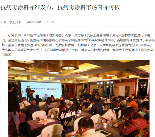 慧正资讯:抗病毒涂料标准发布,抗病毒涂料市场有标可依