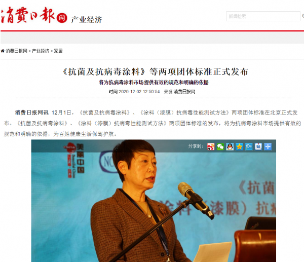消费日报网:《抗菌及抗病毒涂料》等两项团体标准正式发布