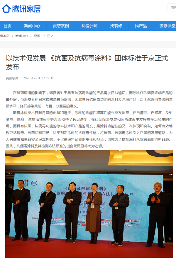 腾讯家居:以技术促发展 《抗菌及抗病毒涂料》团体标准于京正式发布