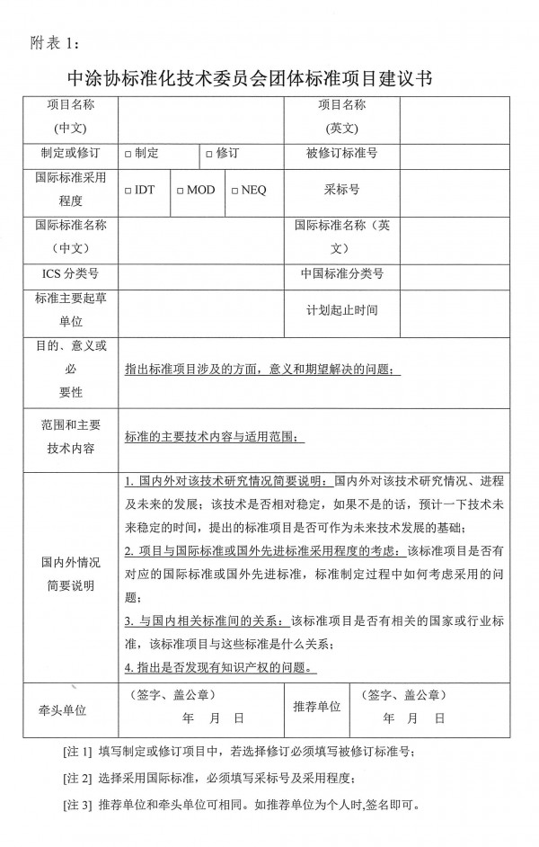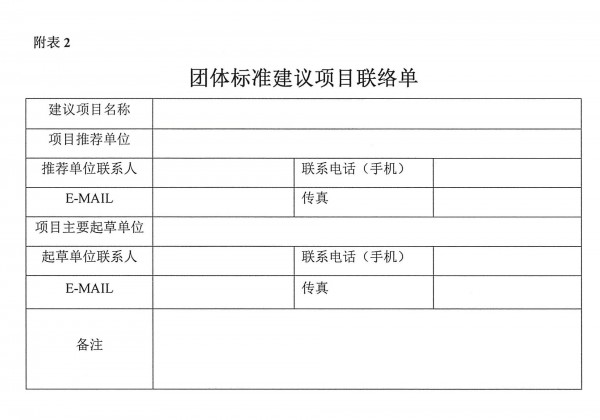 1、凡提出的立项项目,推荐单位或个人应进行充分调研,并按规定的内容和要求,填写“团体标准项目建议书”(附表1)和团体标准建议项目联络单(附表2)。