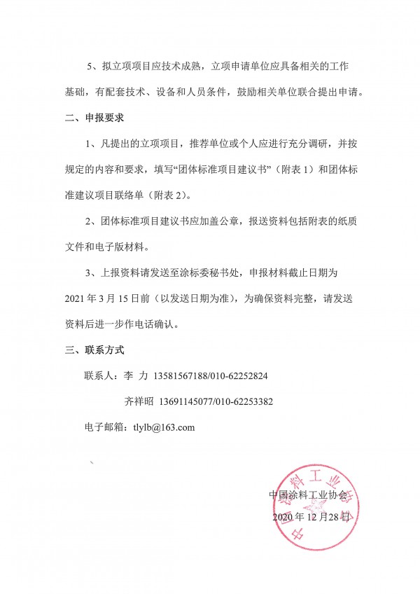 3、上报资料请发送至涂标委秘书处,申报材料截止日期为2021年3月15日前(以发送日期为准),为确保资料完整,请发送资料后进一步作电话确认。