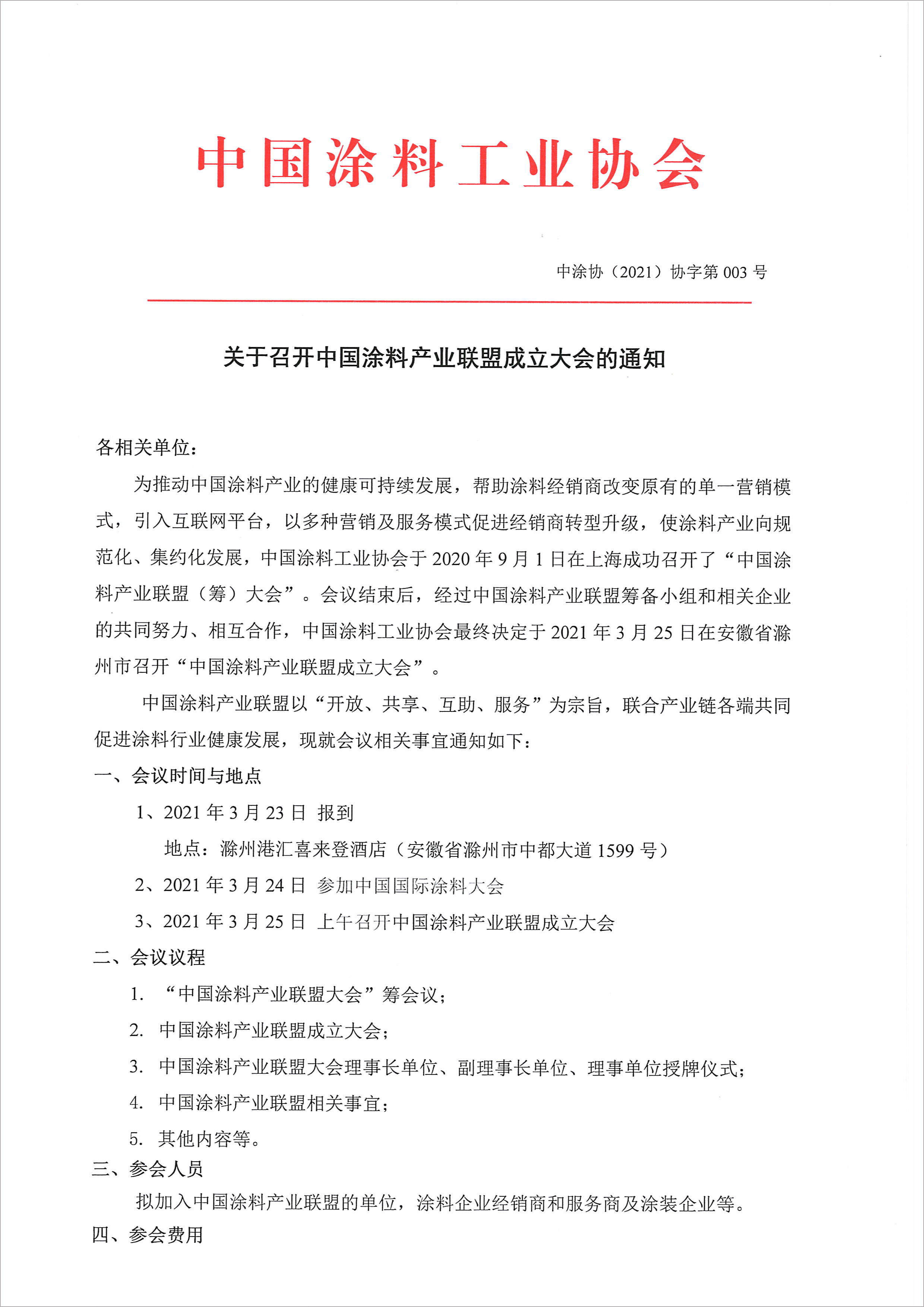 3. 2021年3月25日 上午召开中国涂料产业联盟成立大会