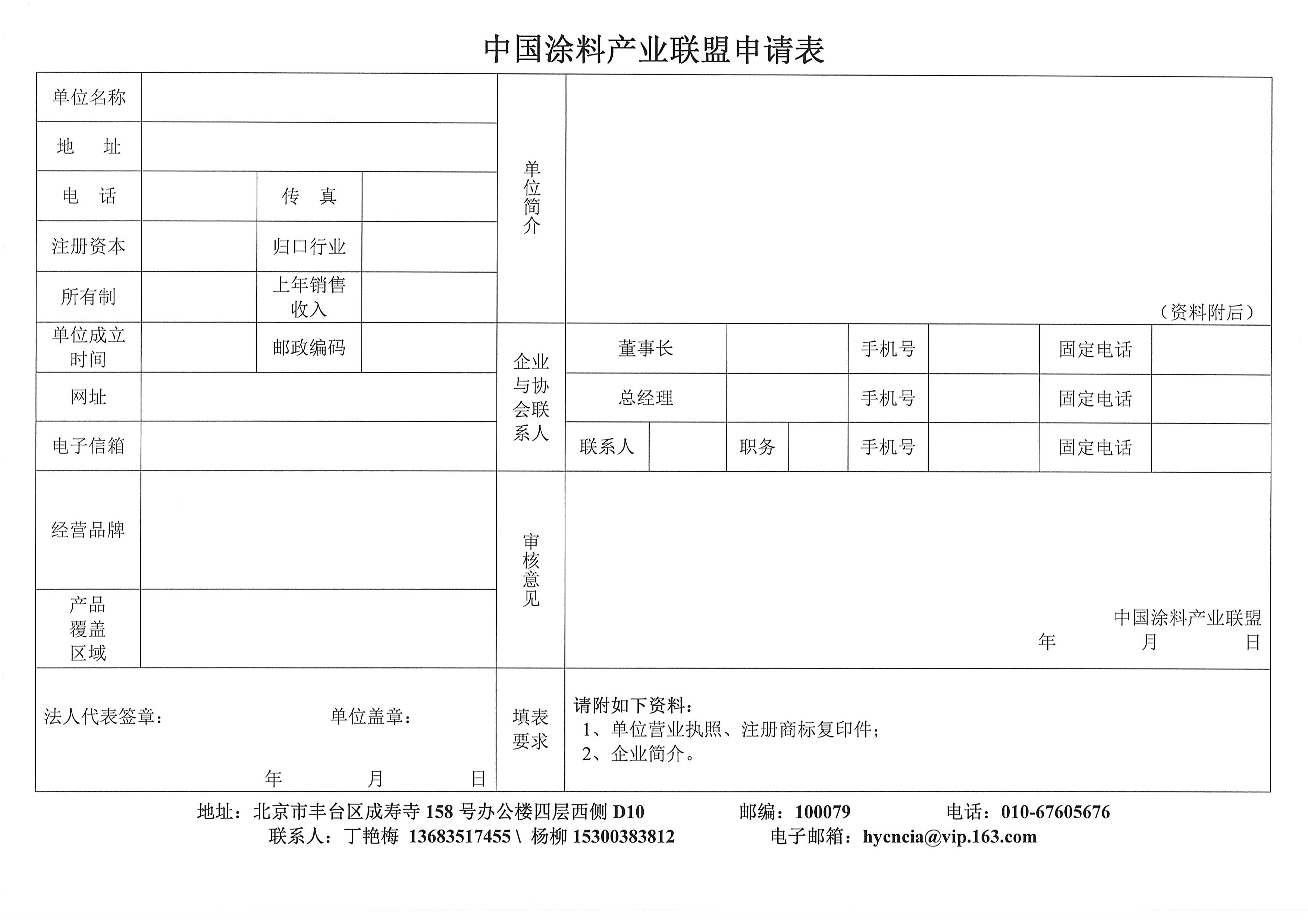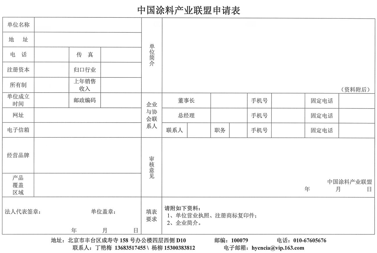 附件:(点击此处下载中国涂料产业联盟申请表)
