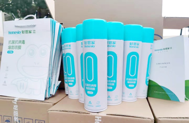 好思家“抗菌抗病毒喷膜”由好思家生物科技公司联合广东膜益生物科技有限公司共同研发而成,经中国科学院武汉病毒研究所实验检测,对新冠病毒、流感病毒等有包膜病毒灭活率达到99.99%;对大肠杆菌及金黄色葡萄球菌等病毒有99.99%的杀灭制作用;绿色净味、防霉效果达到0级,对抗疫一线的警务站、警务亭等重要场所杀菌灭毒,警用装备消毒起积极防护作用。
