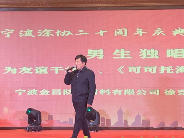 在中国涂协孙莲英会长的带领下表演了“感恩”词朗诵和宁波涂协会员单位宁波金昌防腐新材有限公司徐克昌总经理上台独唱,赢得了大家热烈的掌声。