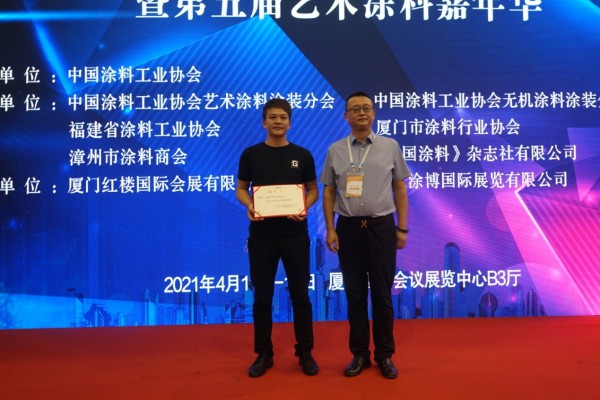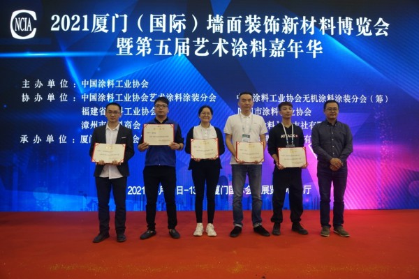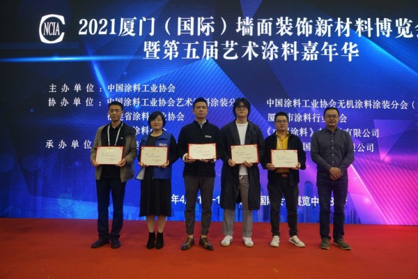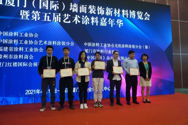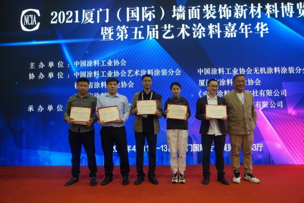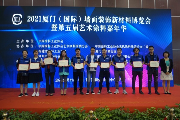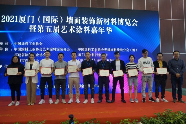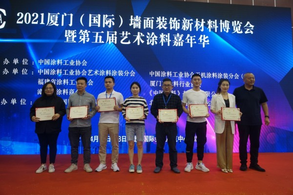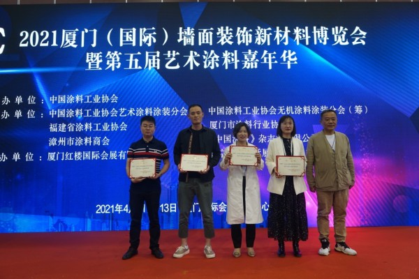 4月11日,2021厦门(国际)墙面装饰新材料博览会暨第五届中国(厦门)艺术涂料嘉年华顺利召开。嘉年华活动上,公布了“优秀品牌奖”“行业年度贡献企业”“2020年度优秀技师”“积极贡献奖”“优秀服务商奖”“优秀设计师”“优秀战略合作商”7大奖项。best365中国官方网站代秘书长刘杰、副秘书长丁艳梅,福建省涂料行业协会会长施义民,河南省涂料协会部长许文静,广东省涂料行业协会名誉会长黄开,宁波市涂料涂装行业协会秘书长吴晓明,best365中国官方网站艺术涂料涂装分会理事长梁海生、执行理事长安康义、秘书长吴振江,立邦艺术漆项目总监陈国栋,PPG建筑涂料色彩研发部经理栾友进等为获奖企业和个人颁发了证书。以下为详细情况: