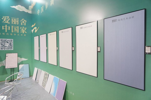 本次展会上,三棵树艺术涂料拿下180平方米展示面积的展厅,一系列高端化的产品和最新技术惊艳亮相,展示未来消费者美好生活的场景及三棵树大国品牌高端形象。此次展会除了陈列了三棵树艺术漆的场景以及艺术漆系列产品,还有一些公司正在研发的新产品。这些新品也将会在7月份的广州建模会进行一部分的展露。