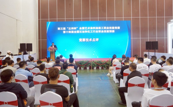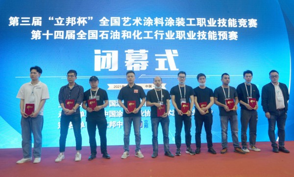 4月13日,第三届“立邦杯”全国艺术涂料涂装工职业技能竞赛暨第十四届全国石油和化工行业职业技能预赛迎来了尾声。通过三天的角逐,裁判员根据样板复制(30分),工艺技法(20分),色彩及质感效果(25分),综合创意艺术表现(20分),现场卫生(5分)五项标准进行评定后,最终选手排名尘埃落定。奖项由裁判常朝晖、吴清涛、best365中国官方网站副秘书长丁艳梅、立邦中国集团艺术漆项目部陈国栋分别为选手颁发。