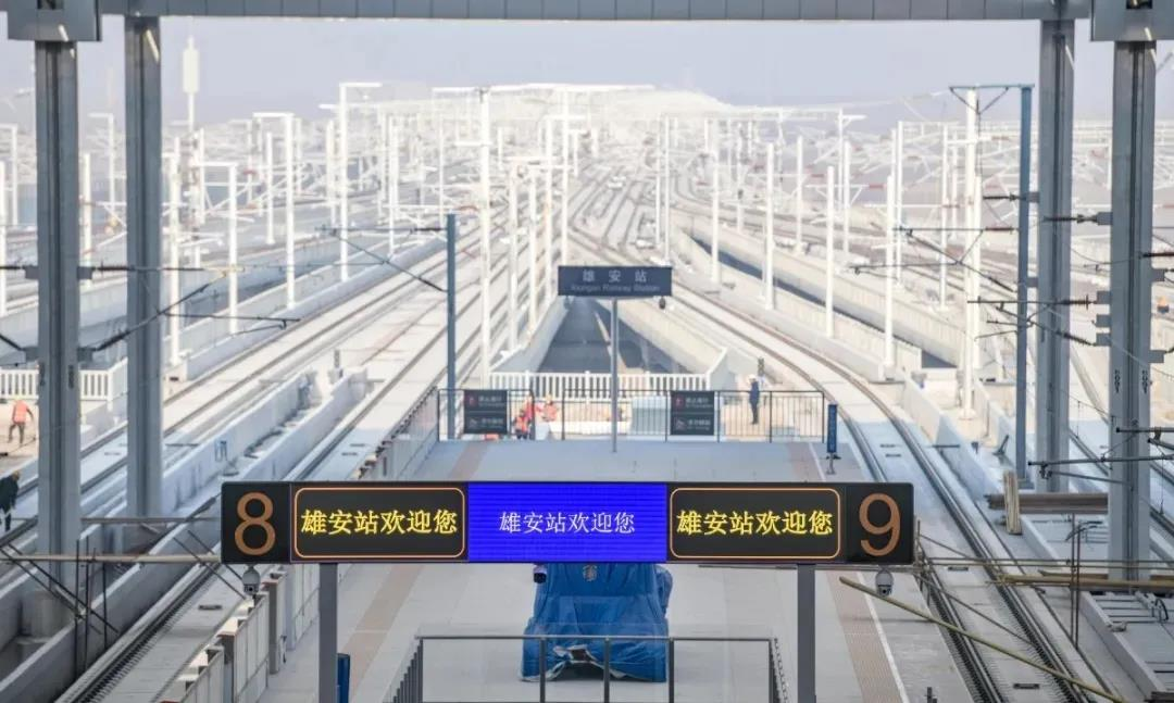 雄安站(Xiongan Railway Station),位于中国河北省保定市雄县境内,主要服务雄安新区,是京雄城际铁路、京港高速铁路、津雄城际铁路、雄石城际铁路、雄忻高速铁路的交汇车站,也是雄安新区开工建设的第一个重大基础设施项目。雄安站将北京、大兴机场及雄安新区三大发展区域连接起来,北京西站至雄安新区的最快通行时间缩短至50分钟,大兴机场至雄安新区最快19分钟可达,助力雄安以“加速度”跑向未来之城。雄安站的整体建设采用先进的节能环保材料及技术,达到了国家绿色建筑三星标准。