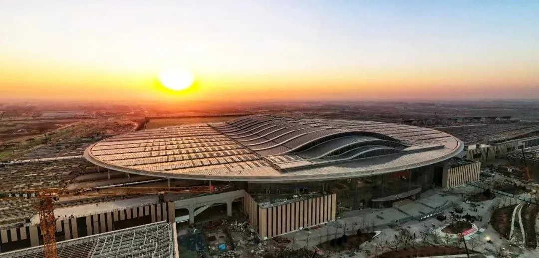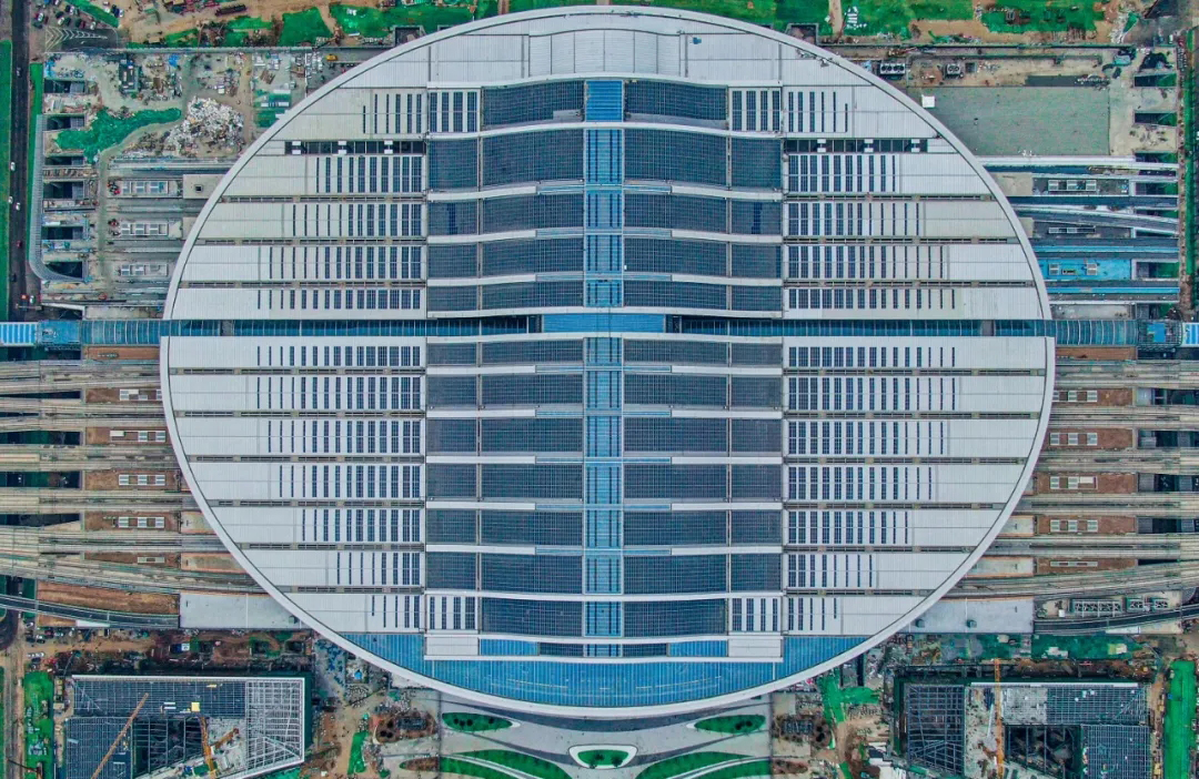 雄安站的工程施工精确到每一寸钢筋使用的BIM技术、智能的服务系统、管理系统和感知系统,让雄安站名副其实地成为一座智慧车站。站房核心骨架为钢结构,抗震强度达到罕见的8.5级;首次出现的装配式吸声站台墙,可以降低列车进站引起的噪声;屋面铺设的4.2万平方米光伏板,让车站可以晒着太阳发电,所发的电可以满足自身的照明用电需求。