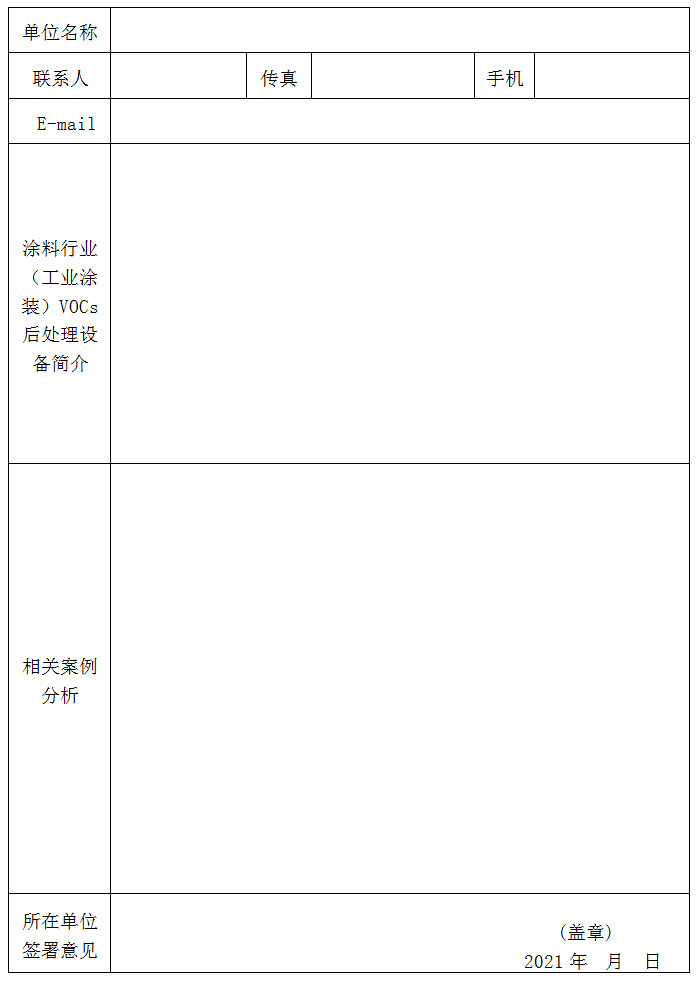 涂料涂装行业VOCs后处理设备先进示范项目申请表